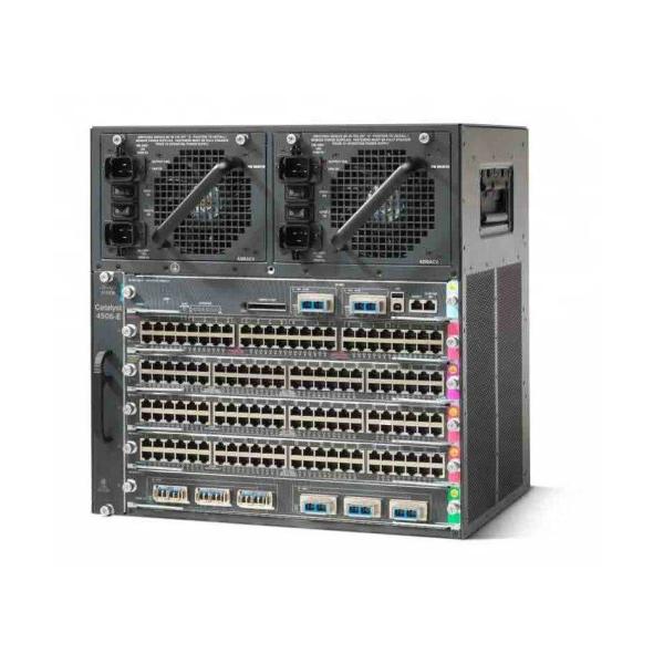 Cisco Catalyst 4506-E chassis offers 6 slots with Fan, 5 line-card slots and 1 supervisor engine slot with supporting up to 244 ports and up to 1500W POE power per slot. The solution provides centralized network architecture for enterprises-level, small and medium-size business through simplified operations. The highly intelligence performance offers non-blocking layer 2 - 4 switching with Secure, flexible communications.